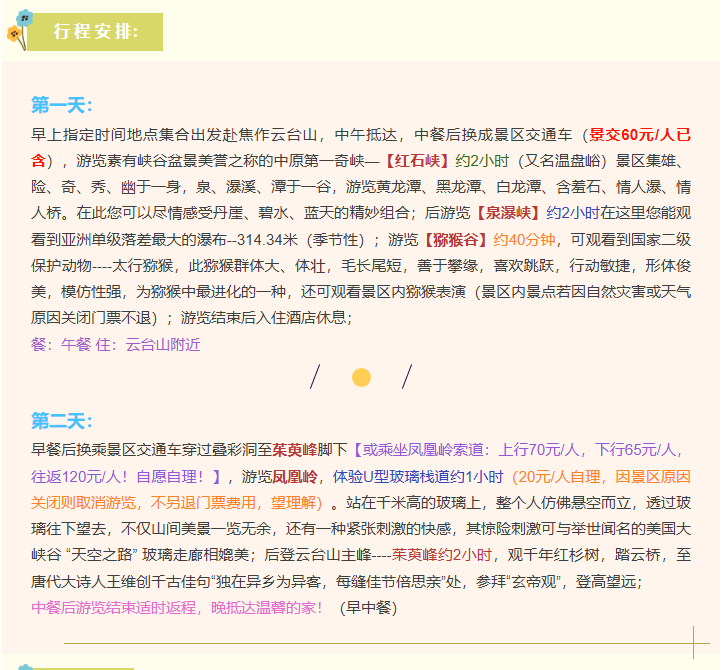 聲明:1、本網站上的旅游線路和價格僅供參考,具體價格及發團時間請依電話或到店咨詢為準,網購預定用戶以工作人員回復確認為準! 2、本公司不接受因價格差異引發的一切訴求! |