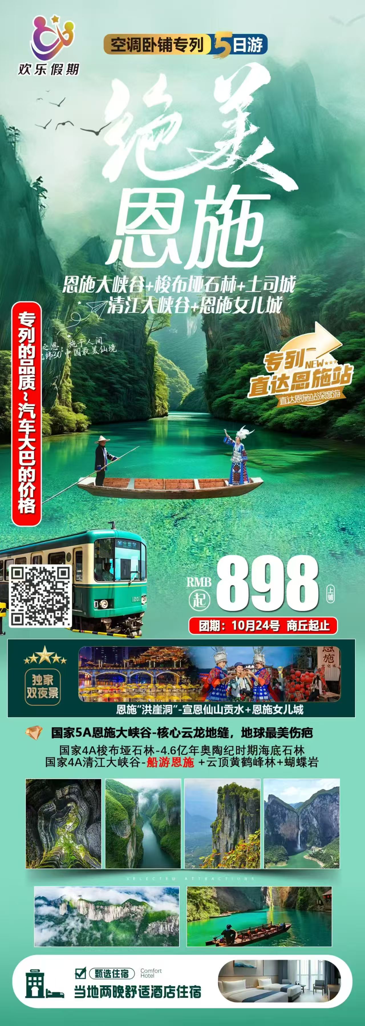 湖北--【絕美恩施】商丘起止~品質空調臥鋪火車專列5日游