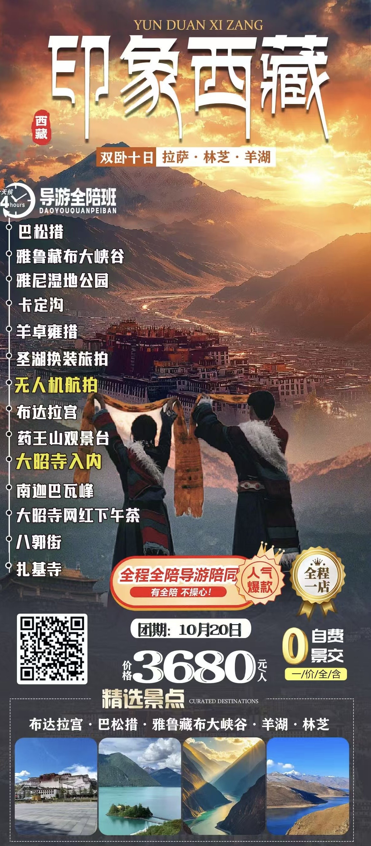 西藏--全陪班【印象西藏】拉薩+林芝+羊卓雍措鄭州起止雙臥10日游