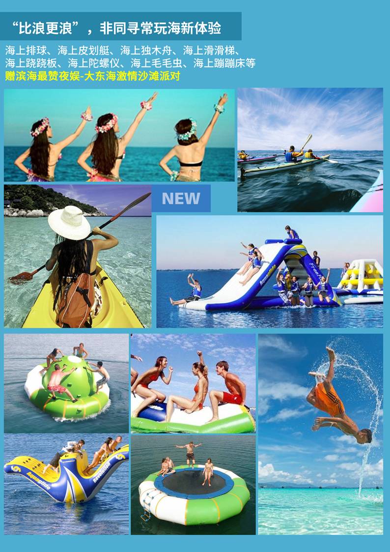 ·享:“比浪更浪”玩海項目(海上排球、海上皮劃艇、海上獨(dú)木舟、海上滑滑梯等)、贈大東海激情沙灘派對