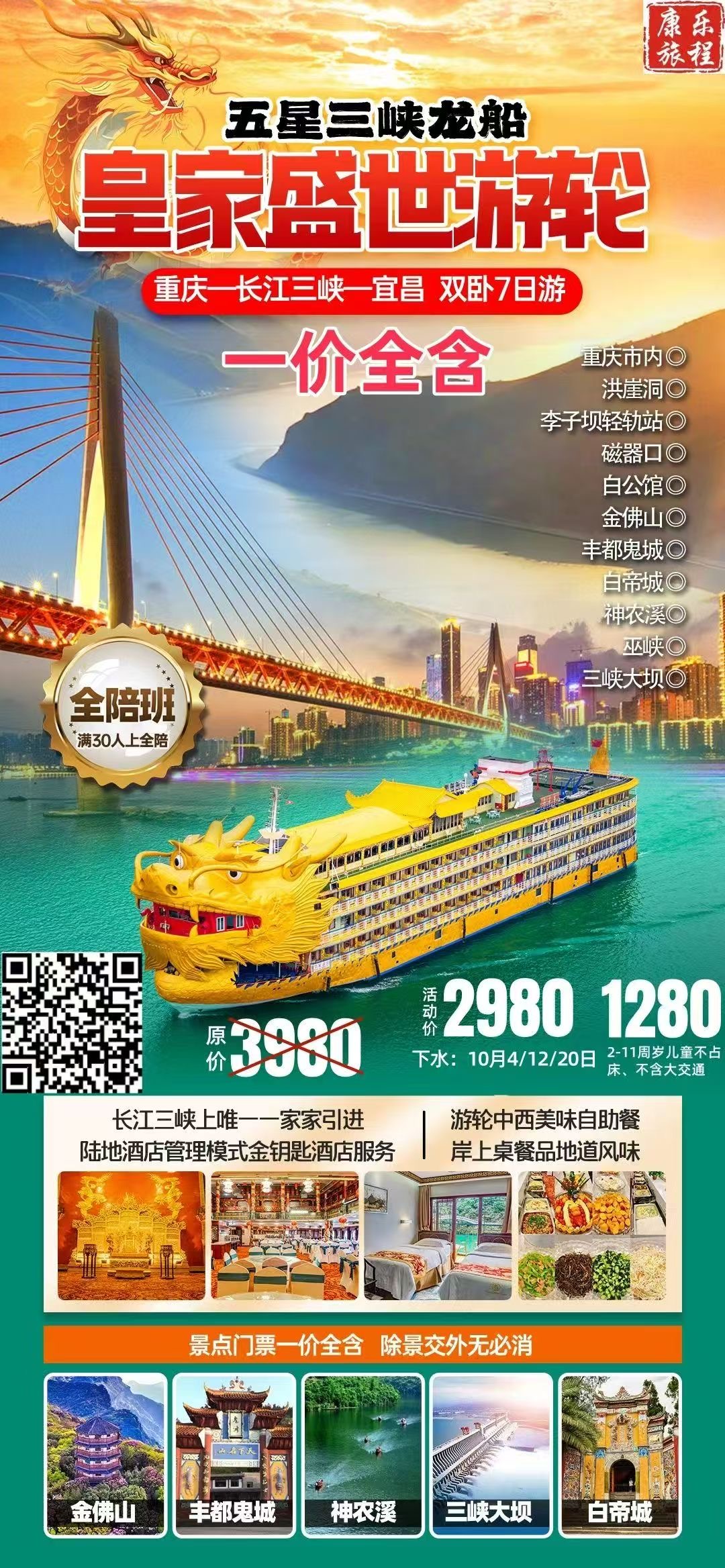 重慶—【皇家盛世郵輪】重慶長江三峽宜昌7日游