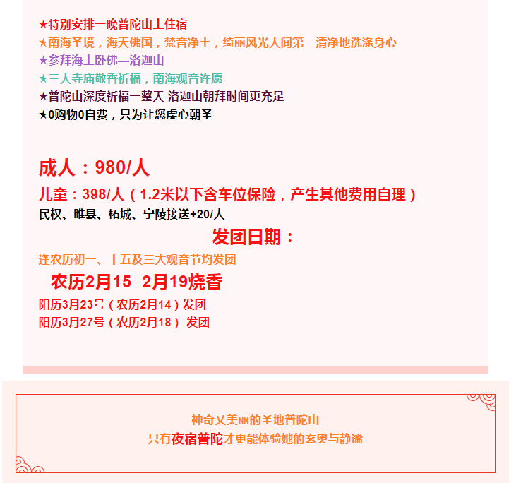 聲明:1、本網站上的旅游線路和價格僅供參考,具體價格及發團時間請依電話或到店咨詢為準,網購預定用戶以工作人員回復確認為準! 2、本公司不接受因價格差異引發的一切訴求! |