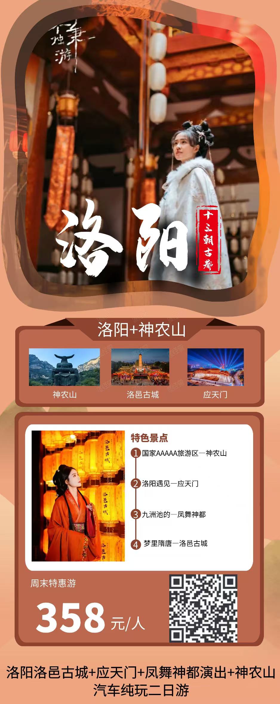 河南--洛陽洛邑古城+應天門+鳳舞神都演出+神農山 汽車純玩二日游